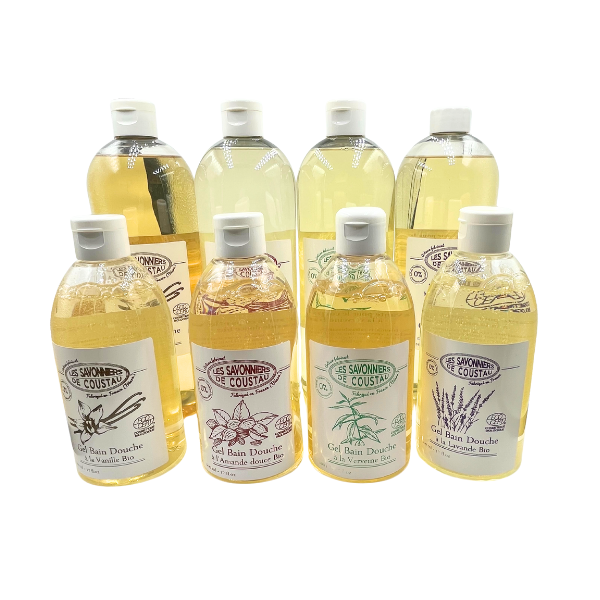 | Parfum | Vanille 500mL, Vanille1000mL, Amande douce 500mL, Amande douce 1000mL, Verveine 500mL, Verveine 1000mL, Lavande 500mL, Lavande 1000mL |
